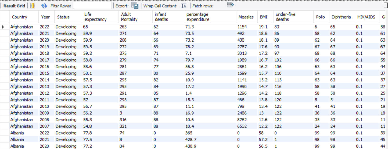 MySQL | Unlocking Insights | Analyzing World Life Expectancy